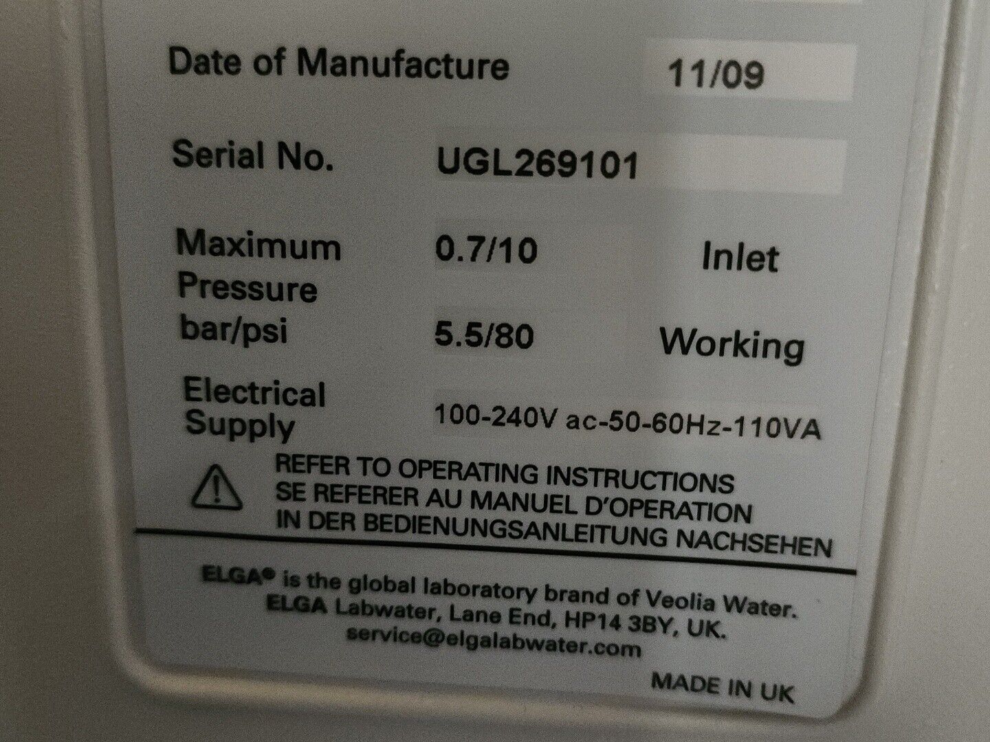 Elga Purelab Ultra Genetic Lab Water Purification System ULTRA GE MK2